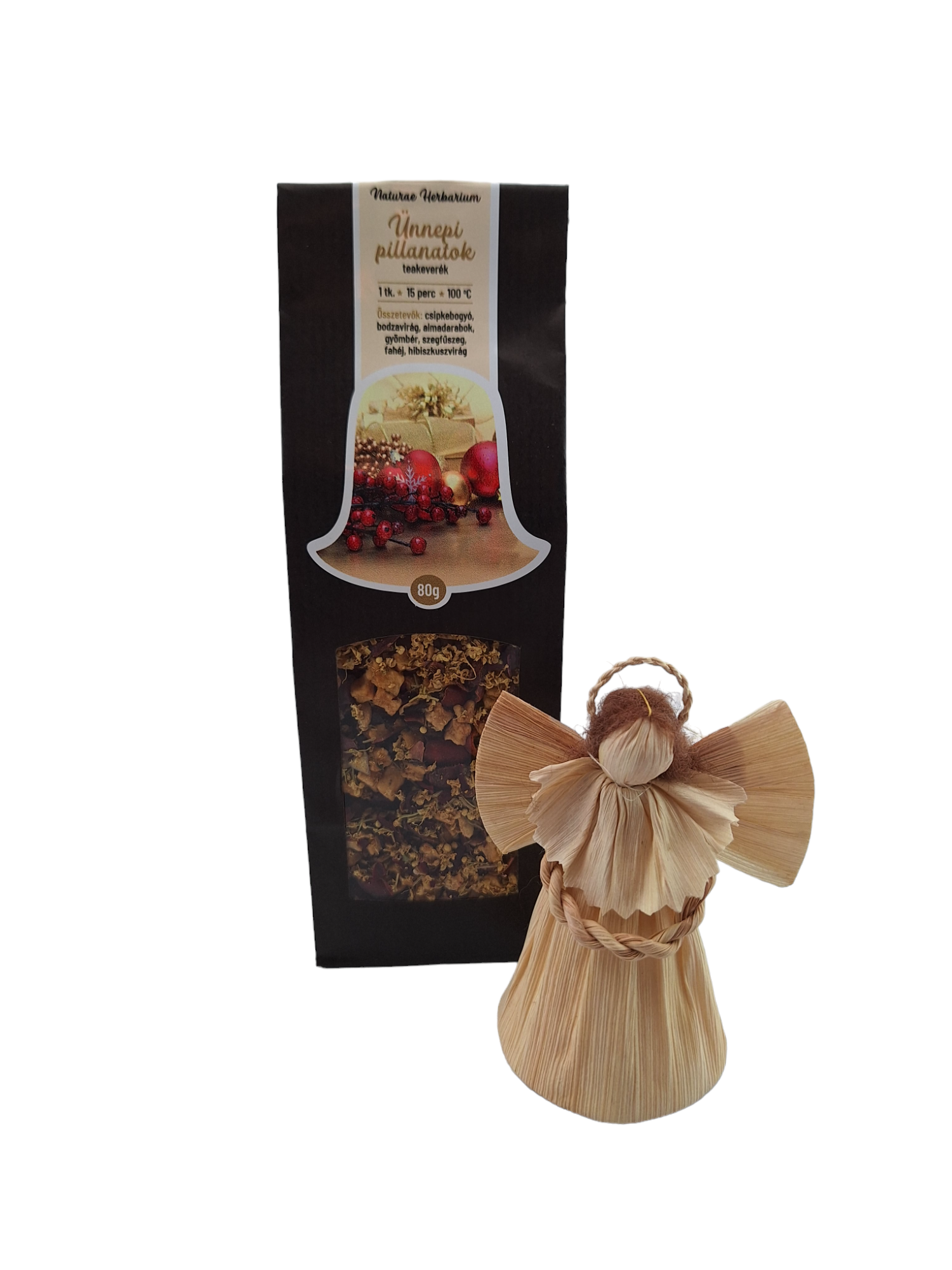 Az összebújós teakeverékünket Ünnepi Köntösbe öltöztettük. Karácsonyi, limitált csomagolásban is megvásárolható Ünnepi pillanatok néven, amit most egy csodaszép Csuhé angyalkával kínálunk.